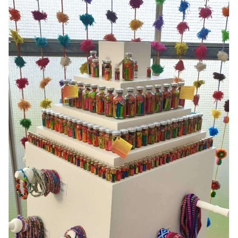 Unique, handmade display stand made of white lacquered wood. Understated, freestanding, and perfect for displaying small products. A real eye-catcher for a fresh shop atmosphere.
