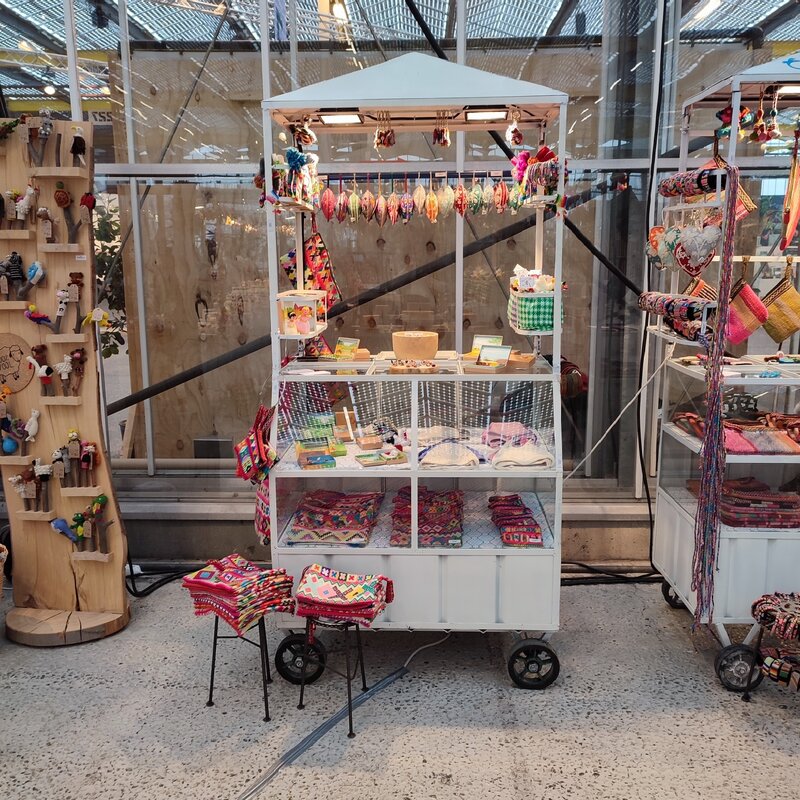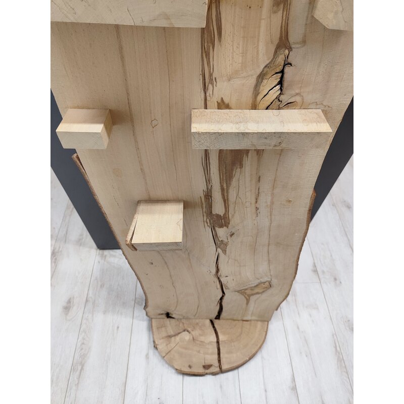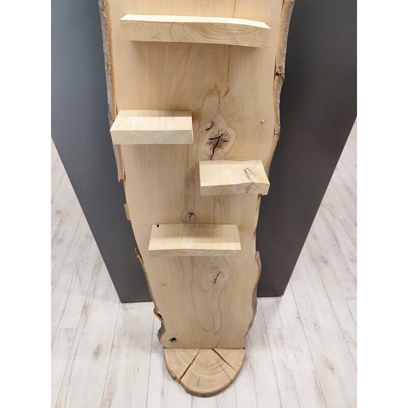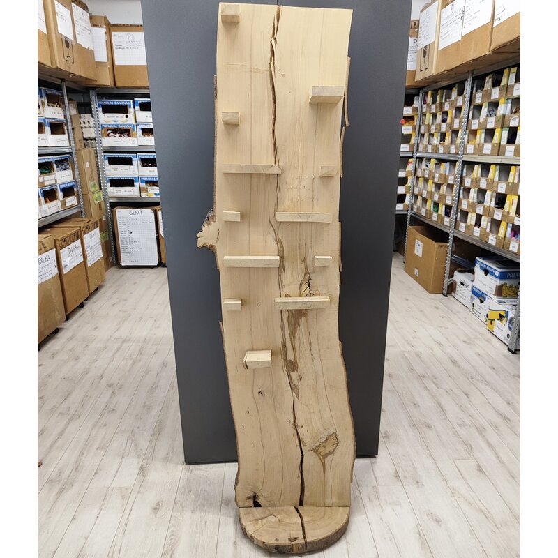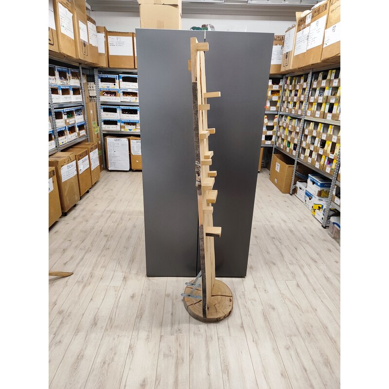 We offer a selection of our former trade show displays: stylish wooden presentation pieces with a realistic wood look. These displays are handmade. The wood is peeling slightly in some areas.