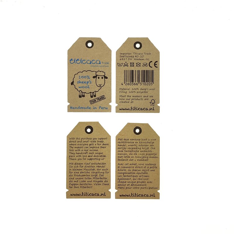 This finger puppet donkey made of 100% wool is slightly larger than the classical finger puppet. The colours are more harmonious and softer. The thread is a bit coarser and thanks to this natural material the effect is even more lovely! Naturally, it comes with the usual fine finish. Each finger puppet comes with a nice card with product information.