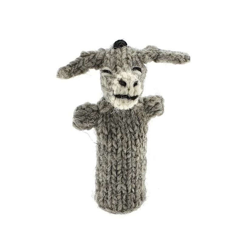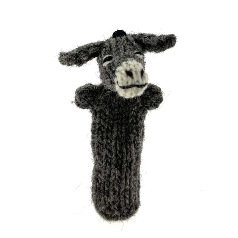 Finger puppet donkey, 100% sheep's wool
