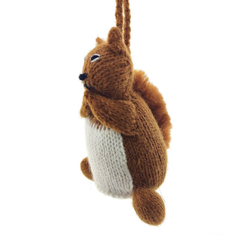 These figures are meant to be hung, but can also be used without the string (just cut it off) as nice soft toys. Above the cradle, on a children's backpack or in the children's room. With his tummy round as a Christmas ball, this squirrel also feels right at home in the Christmas tree. Size about 9 cm.