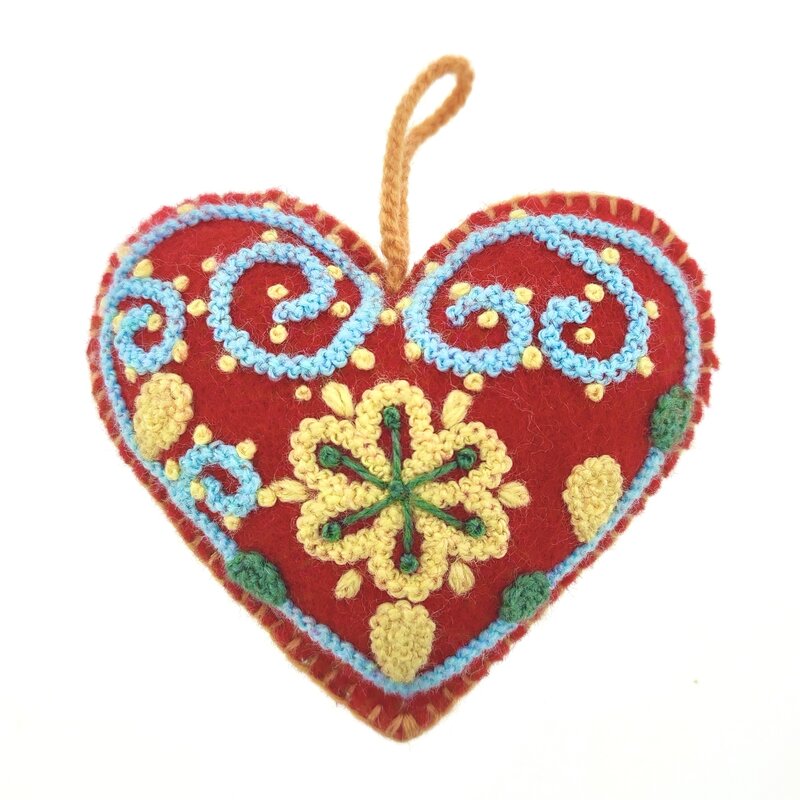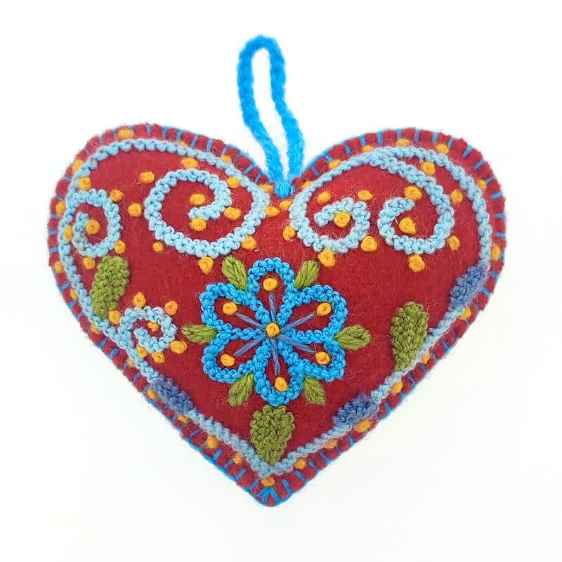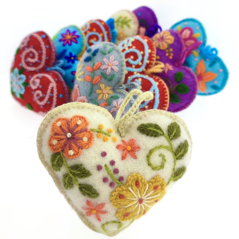 Lovely and heartwarming home decoration. Soft, modern colours and lovely high quality material: 100% local Peruvian sheep's wool. Made with dedication in the mountains of Peru. The pictures represent the product well, but each heart is unique. Decorated on one side. Size: 11 cm. (without ribbon).