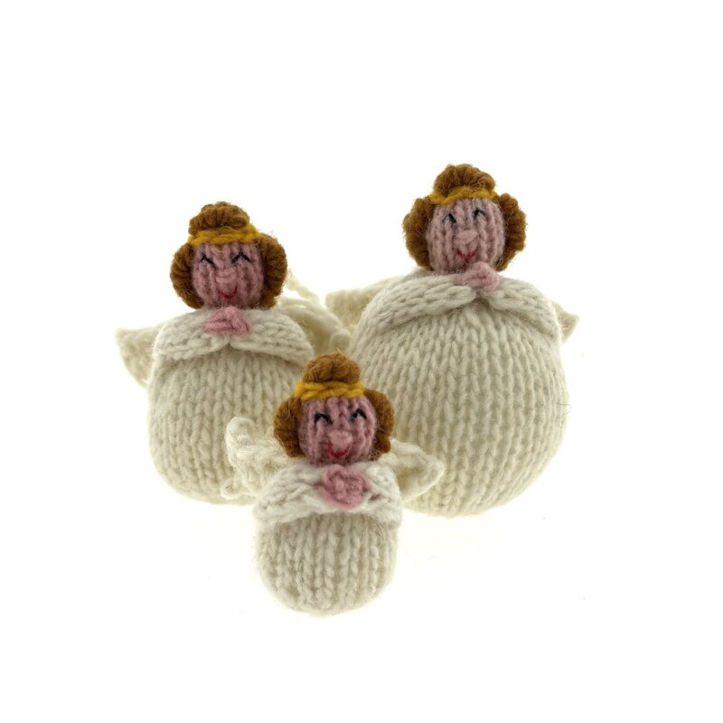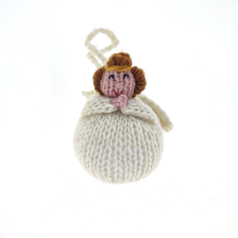 Geluksengelen! Eén van onze bestsellers, maar nu dan in 100% natuurlijke en lokale Peruaanse schapenwol. Om bijvoorbeeld bij je te dragen aan je tas, portemonnee of sleutelhanger. Of als subtiele en originele verrassing hangend aan een kaartje, cadeautje of boeketje bloemen. Rondom Kerst op een kerstkaart of natuurlijk in de kerstboom zelf. Diameter: 8 cm.