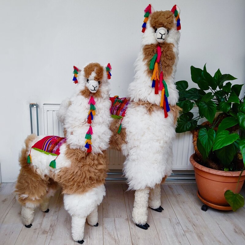 Deze indrukwekkende lama is volledig gemaakt van authentieke lama wol. Met zijn vriendelijke uitstraling, volle vacht en statige formaat steelt hij moeiteloos de show of hij nu in een winkel staat als eye-catcher of een bijzondere plek krijgt in een kinderkamer of bedrijfsruimte.
