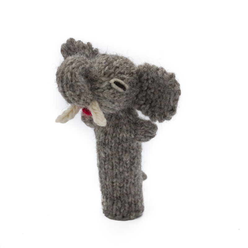 Deze vingerpop olifant van 100% wol is iets groter dan de klassieke vingerpop. De kleuren zijn harmonieuzer en rustiger. De draad is iets grover en de uitstraling is dankzij dit natuurlijke materiaal nog mooier! En natuurlijk met dezelfde gedetailleerde afwerking als altijd. Bij elke vingerpop zit een mooi kaartje met product info.